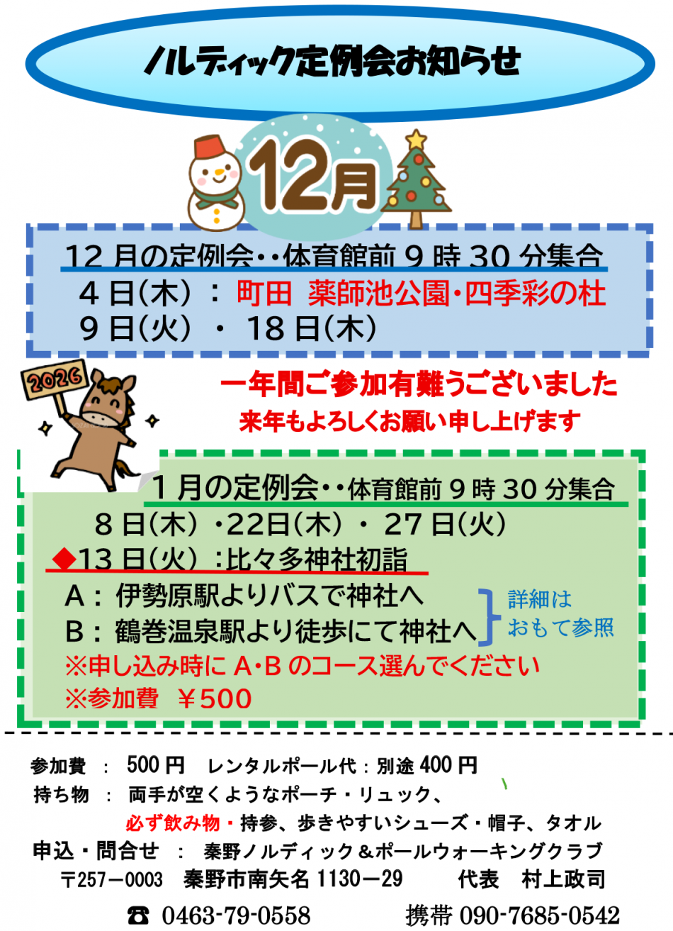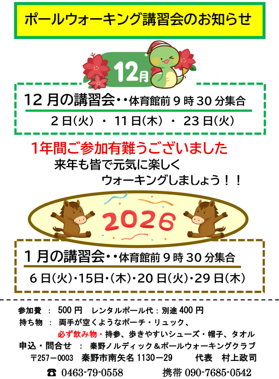 ■秦野NW&PWクラブは平成24年発足して今年で12年目を迎えます。参加者の皆様やコーチの協力で続けてこられました。