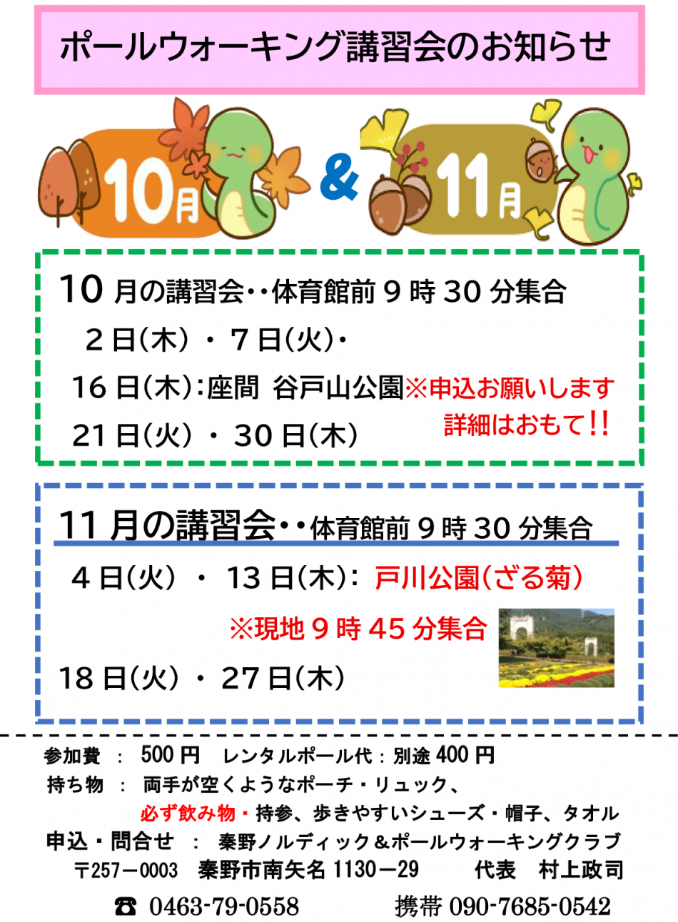 ■秦野NW&PWクラブは平成24年発足して今年で12年目を迎えます。参加者の皆様やコーチの協力で続けてこられました。