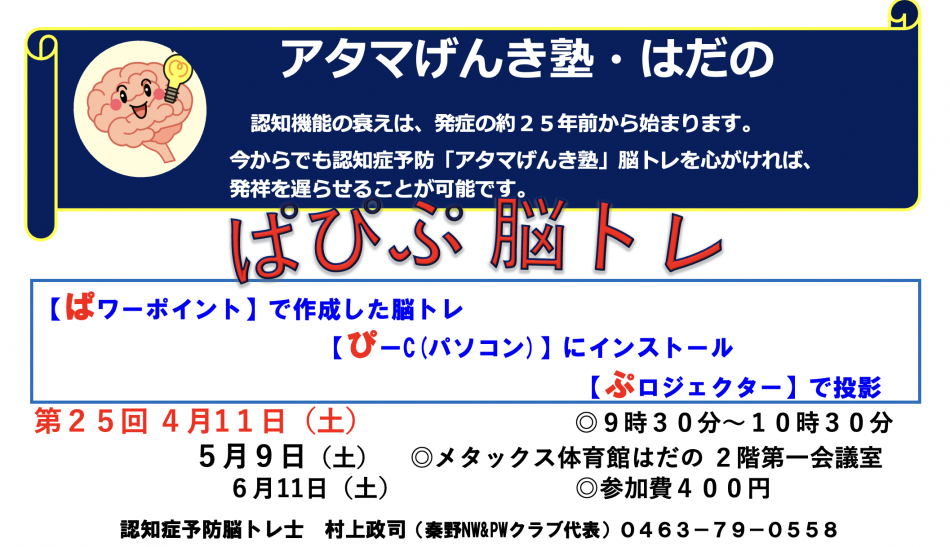 大好評!アタマげんき塾の開催予定です。