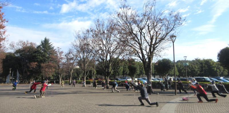 大山をバックにして 12月ですが、暖かな日が交互に来ます。水無川沿いを歩くのは犬の散歩の方が多いですね 秦野PWの皆さんの貸切りコースのようです。